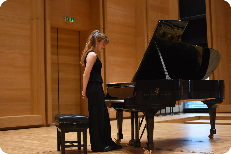 Joining the university in 2020, Georgina became a Christina Kennedy Memorial Piano Scholar under the tuition and mentorship of Ancuta Nite-Doyle. Securing several opportunities to perform in lunchtime concerts, competitions and public masterclasses with pianists including Fali Pavri and Joanna MacGregor, Georgina has endeavoured to improve her technique and broaden her repertoire ever since, and cherishes the musically and personally enriching experiences she gained during her time at university.
